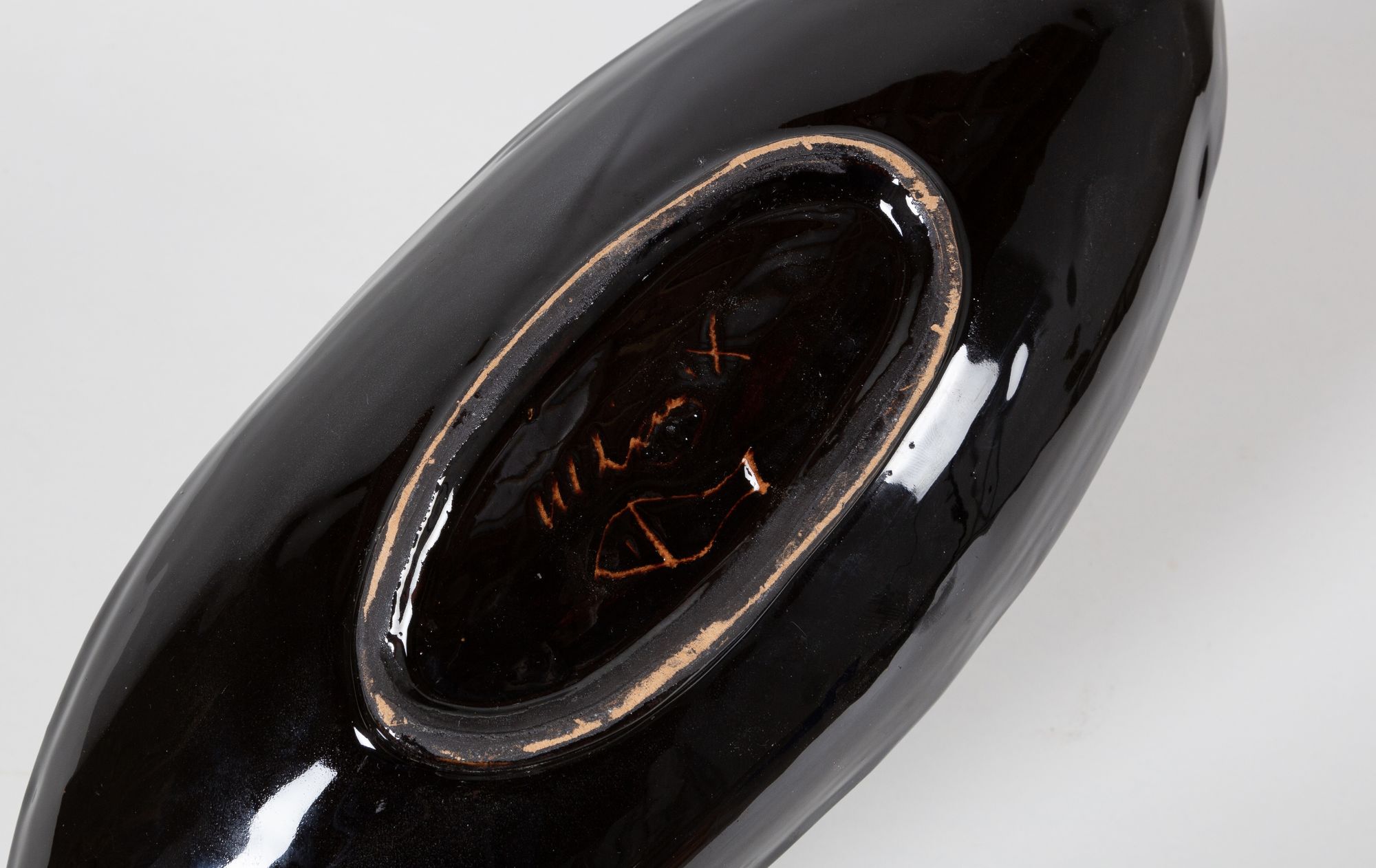 Large Japanese-style dish from the 1970s by Swiss ceramist Edouard Chapallaz. Commissioned piece, not commonly f...