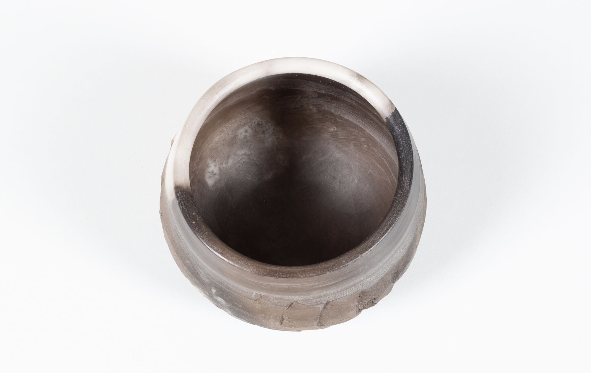Bowl by ceramist Denise Millet. Denise Millet is a specialist in primitive firings. She acquired these techniques during her many travels in Africa and Europe. Low-temperature, pit firing. Unglazed piece, partially polished and smoked. Piece in very good condition, signed under the base.